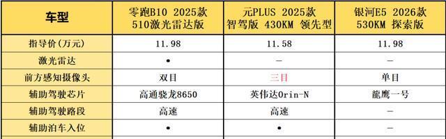 具体到功能上,银河E5相对会更弱一些,少了辅助泊车和辅助变道,辅助进出匝道功能也没有。而零跑B10在配上激光雷达过后,驾驶辅助的可靠性应该会更高,能力上限比起另外两款车也会更有优势。