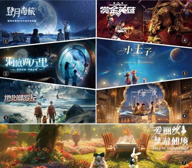全新XR项目含《登月奇旅》《海底两万里》《地心侏罗纪》《赏金英雄》《小王子》《一千零一夜》《爱丽丝梦游仙境》七大主题,适配不同年龄与喜好,持续带来新鲜体验。